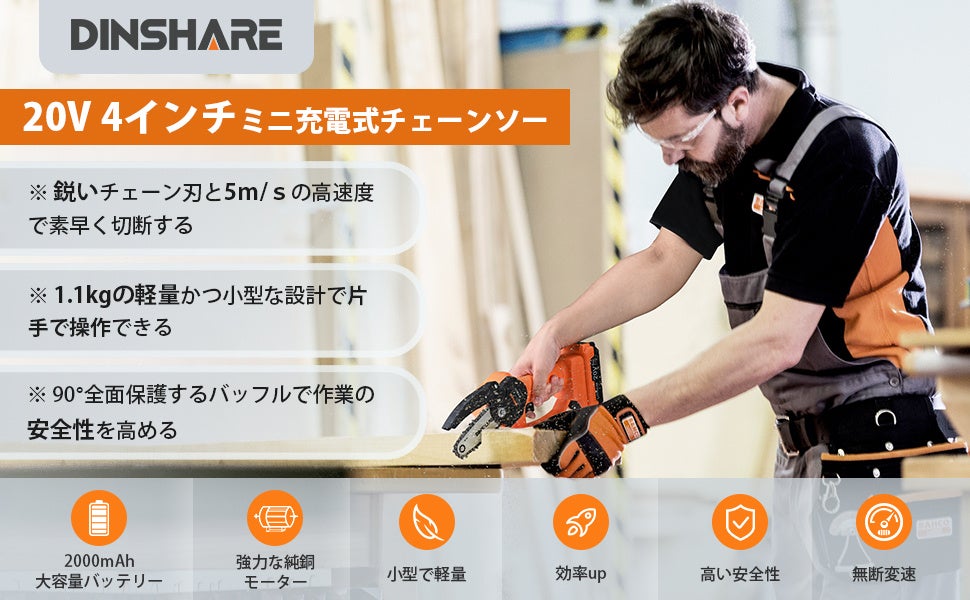 - DINSHARE 4インチ電動チェーンソー JC-6001