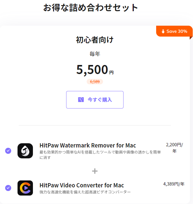 HitPaw Watermark Remover for Mac – 1 Year/1 Mac + HitPaw Video Converter for Mac – 1 Year/1 Mac=2200+4389=5,500(オリジナル価格6,589)