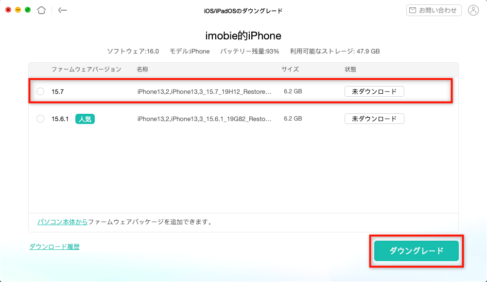 Step 4.iOS 15(iPadOS 15)のファームウェアバージョンをダウンロードします。