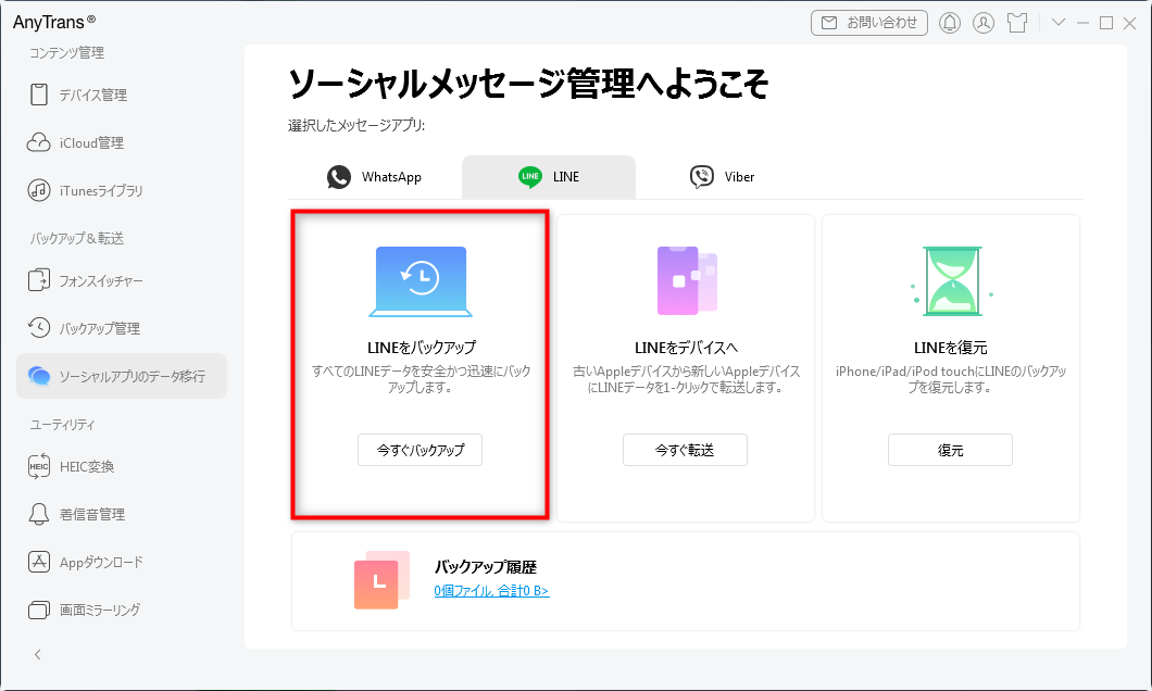 ◆LINEトック履歴および添付ファイルをバックアップ、またはiPhone/パソコンへ転送できる