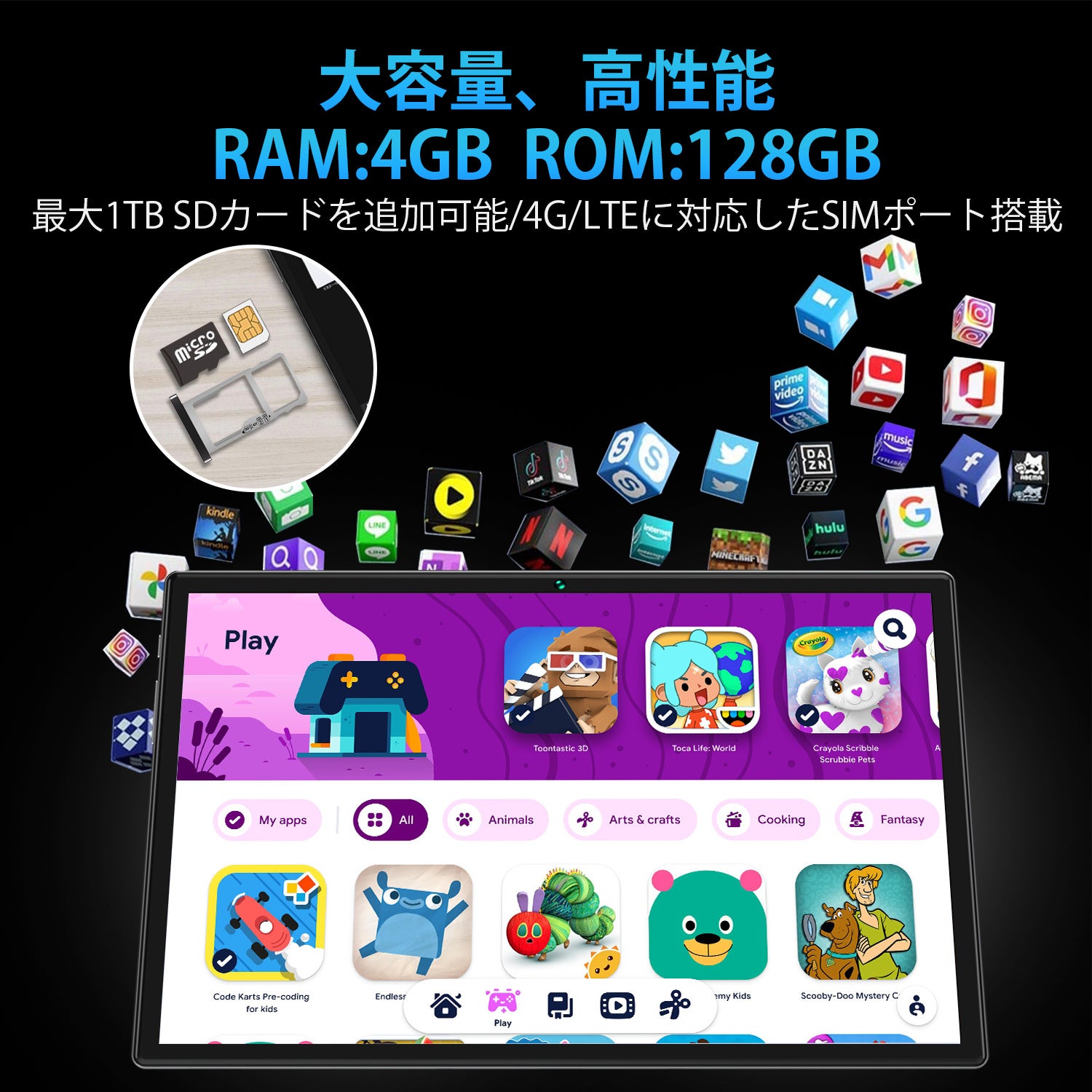 このBMAXタブレットは4GBのRAM(メモリ)と128GBのROM(高速ストレージ)を搭載し、MicroSDカードで最大512GBのストレージに拡張することができます。メモリ容量が大きいとタブレットはサクサク動くようになります。Webサイトや動画を見たり、重いアプリや高画質のゲームを楽しみいただきます。