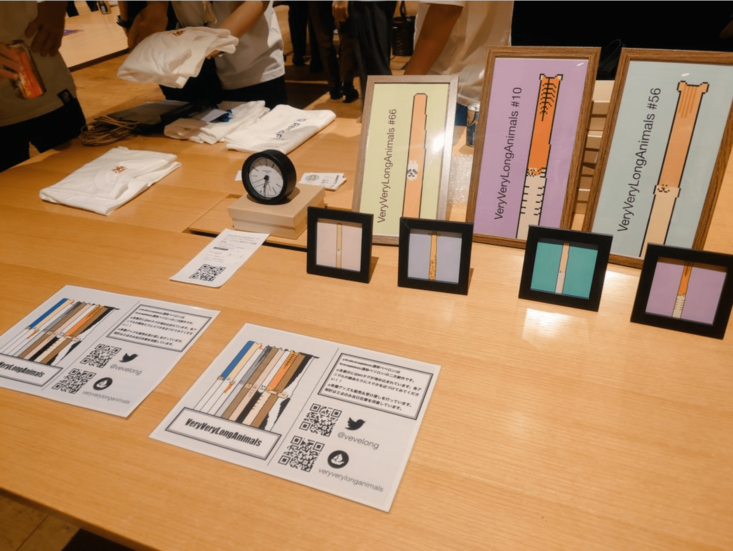 当日会場内において、コレクションの垣根を越えてNFTに関係する活動を応援する、国内初となるNFT活動の展示即売会を実施いたしました。VeryLongAnimalsの二次創作だけでなく、NFTに関わるサービスやプロトコル、他国内NFTプロジェクトからの参加も多数あり、どのスペースも大盛況となりました。