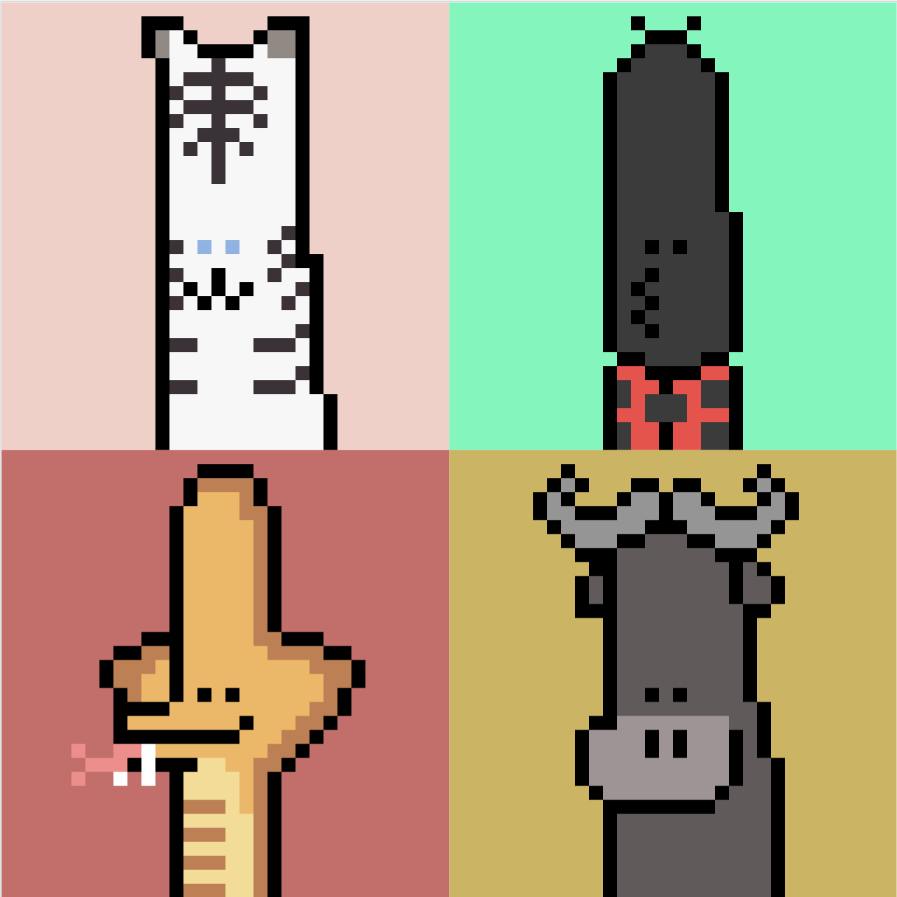 VeryLongAnimalsは、日本で最も熱量の高いコミュニティを持つNFTコレクション。顔が長い動物のインターネットミームを楽しみながら、CC0に近いオープンな二次創作文化や「ポテトポイント」を使った貢献度評価によってコミュニティが盛り上がっている。投機性よりもコミュニティに重きを置くことで取引単価は順調に伸び、最大で10ETHにまで達している。
