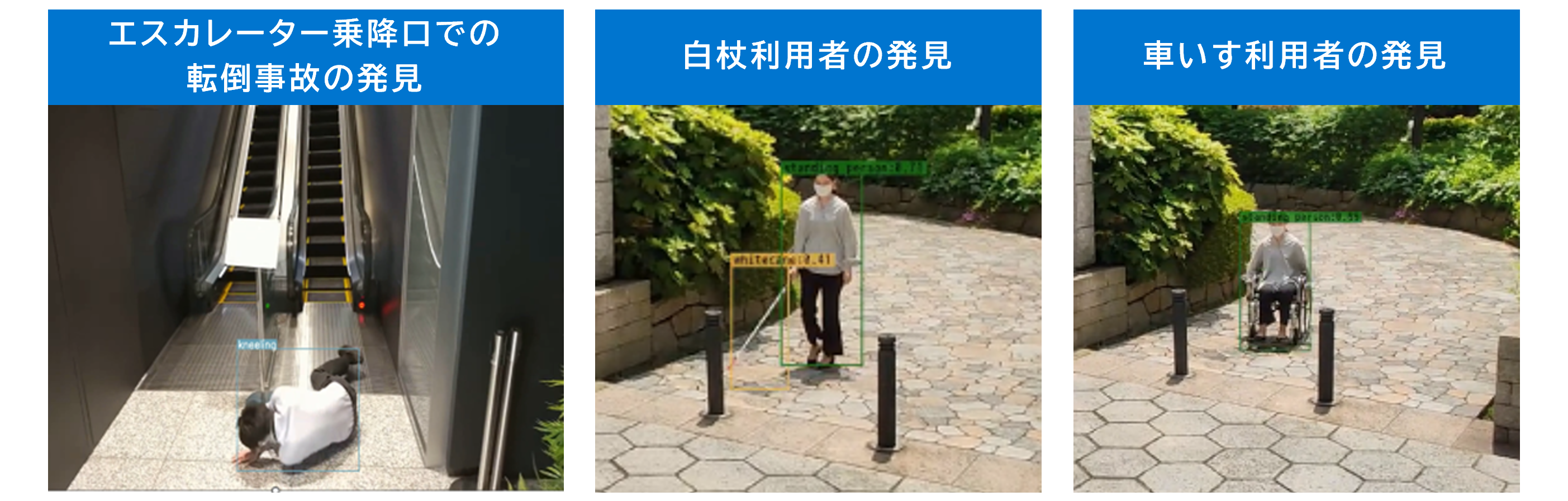 AIが監視カメラの画像を解析、エスカレーター転倒事故や要介護者の発見をお手伝いします。