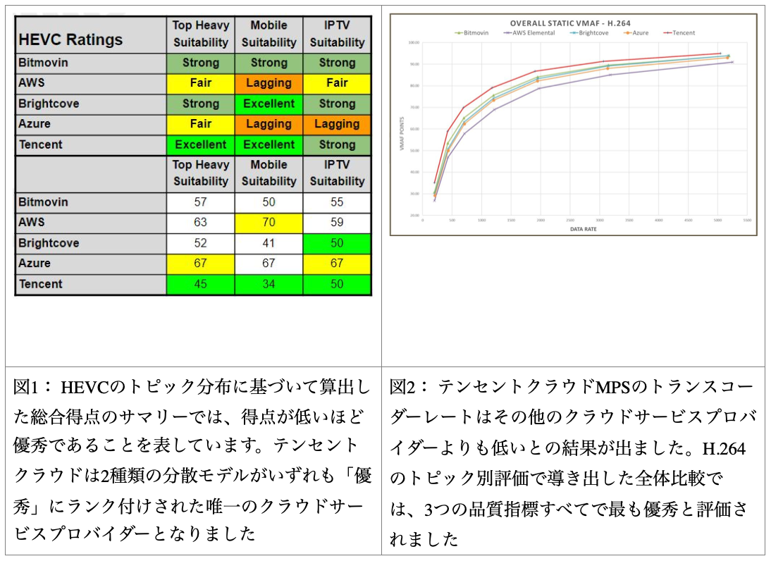 世界的なテクノロジー企業テンセント(騰訊)のクラウド事業であるテンセントクラウドは9月20日、同社のメディア処理サービス(MPS)が国際的に権威あるメディアストリーミング技術プラットフォームStreaming Learning Centerの発表した2つのレポートで、最も優れたパフォーマンスを発揮した動画エンコード技術として選出されたことを発表しました。テンセントクラウドが重要なエンコード技術において競合サービスから突出し最前線に立っている点、高品質でスムーズな動画や帯域幅・ストレージのコストパフォーマンスで顧客企業をご支援している点で評価をいただいています。
