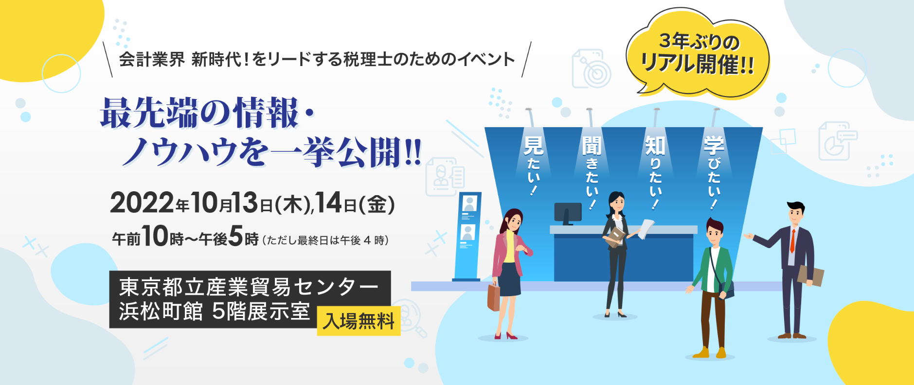 『会計事務所博覧会2022』では、デジタル化対応等、変化する会計事務所業界の発展と成長を促すことを目的として、会計事務所が抱える課題を解決するための最新システムが展示され、会計業界に関する最新の情報・サービスに関するセミナーが開催されます。