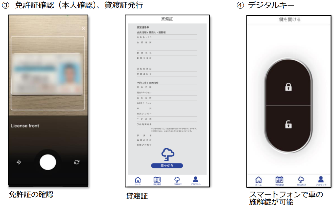 今回当社が新開発する無人レンタカーシステムでは、車両検索/予約、決済、免許証確認(本人確認)、貸渡証発行、スマートフォンによる車の施解錠など、レンタカーの無人運営を実現する機能をすべて搭載し、レンタカー事業者の業務効率化/省人化とレンタカー利用者の利便性の向上を同時に実現します。