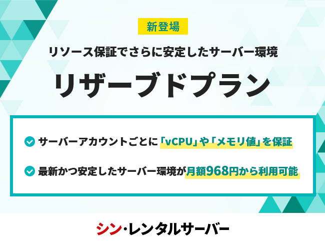 このたびレンタルサーバー「シン・レンタルサーバー」で提供を開始した「リザーブドプラン」では、サーバーアカウントごとにvCPU・メモリリソース量を保証することでより安定したサーバー環境が利用可能です。