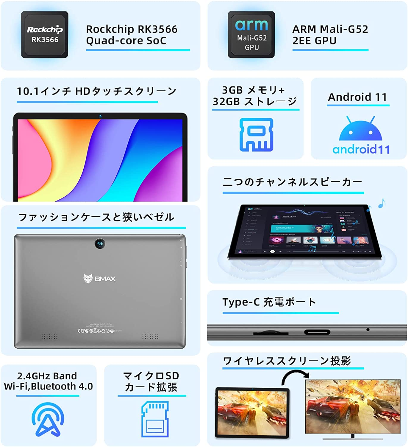 ➤MaxPad I9 Plusタブレットは10.1インチ1280*800のインセル型ディスプレイ、視野角の広さと発色のよさが特長のIPS液晶を搭載。正面以外から画面を覗き込んでも、美しい色合いの写真や映像を楽しめます。臨場感あふれるサウンドが体験できる「デュアルスピーカー」を搭載。