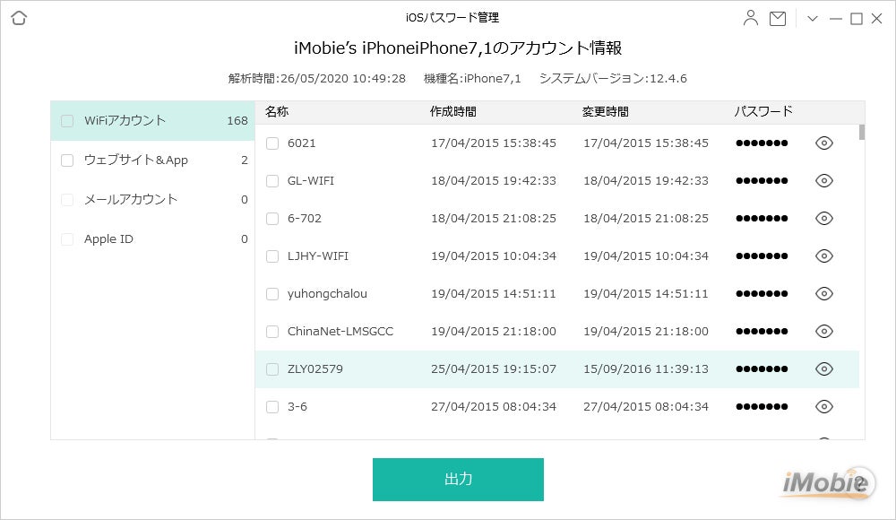 AnyUnlockは無料でiPhone/iPadのパスワードをスキャンできます。Wi-Fiパスワード、ウェブサイトとアプリでログインしたアカウントとパスワード、Googleメールアカウント、クレジットカード情報、スクリーンタイムパスワードなど、様々なパスワードを解析可能です。