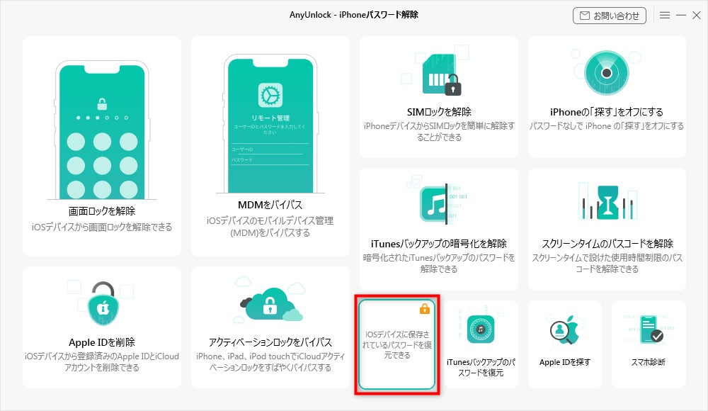 AnyUnlockはiOSユーザー向けのパスワード管理/解除ツールです。専門的な知識は不要で、パスワードに関する問題を簡単に解決できます。