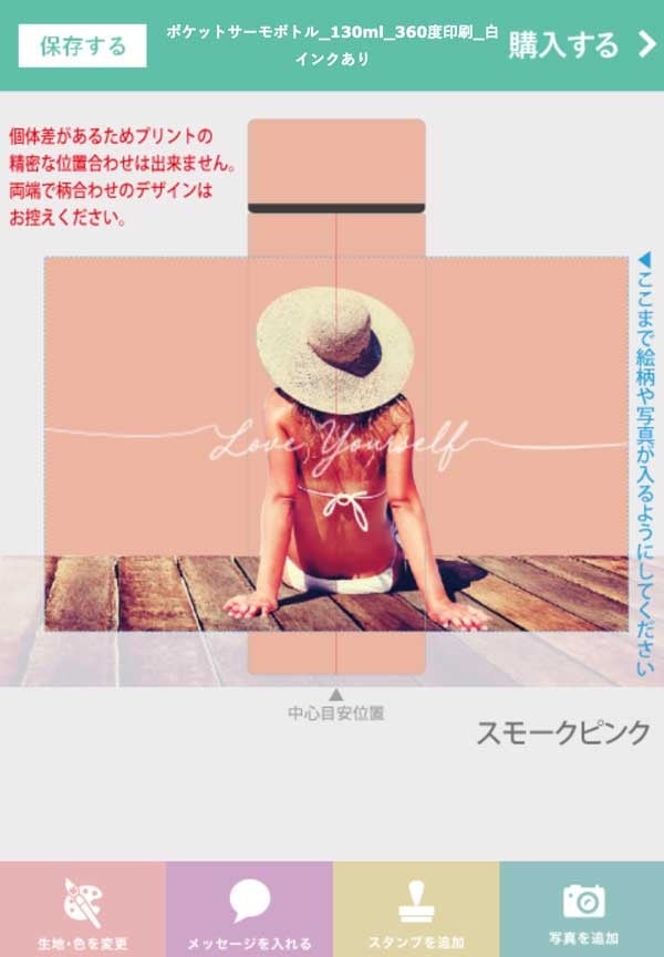 下記URLをクリックすると、ポケットサーモボトル(130ml)作りが体験できます。デザイン作成は無料です。もしお気に入りのデザインができればもちろん購入可能!