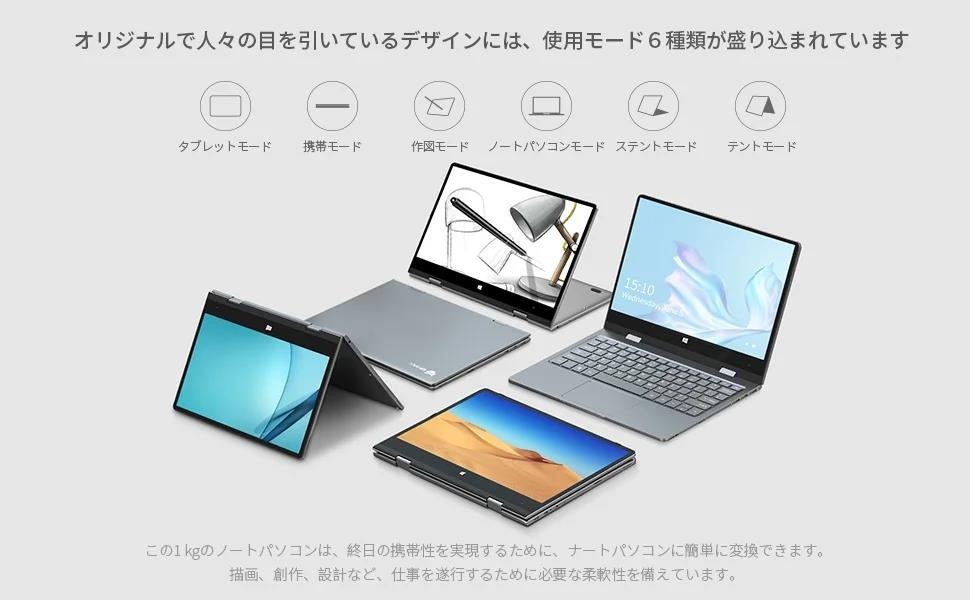 2 in 1ノートパソコン 360度回転可能 11.6インチ FHD (1920 x 1080) IPS タッチスクリーン、ノートパソコン型やタブレット型という二つの状態で使用可能。約1.0kg、持ち運びが便利、学生・初心者向け 仕事・オンライン授業・会議用 一般家庭用おすすめのノートPC。