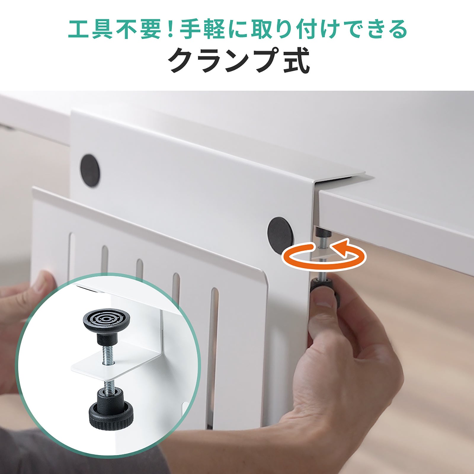 工具を使わずに装着できるクランプ固定式です。