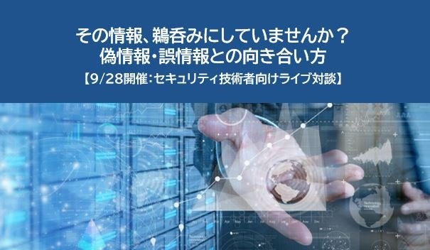 NECは、2022年9月28日(水)にセキュリティ技術者向けライブ対談「その情報、鵜呑みにしていませんか?偽情報・誤情報との向き合い方」を開催します。今回は、サイバーセキュリティの方法論を適用してこうした不確かな情報と向き合い、身を守る方法についてお話しします。