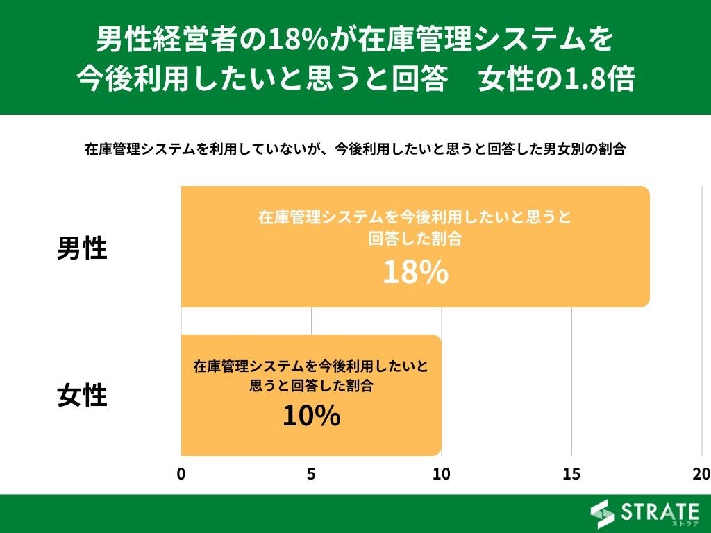 【男性経営者の18%が在庫管理システムを今後利用したいと思うと回答 女性の1.8倍】