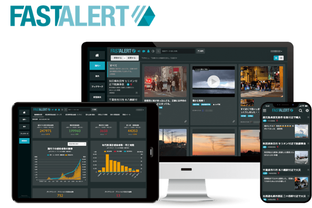 とりわけ、FASTALERTは、報道に必要不可欠なツールとしてNHKと全ての民放キー局、全ての一般紙に採用されるなど、国内の大半の報道機関に浸透しています。また、最近では防災やBCP、障害監視やサプライチェーンのリスク管理など広範なニーズに対応する情報ツールとして、政府・自治体やインフラ企業をはじめとする幅広い業種の顧客に導入・活用されています。