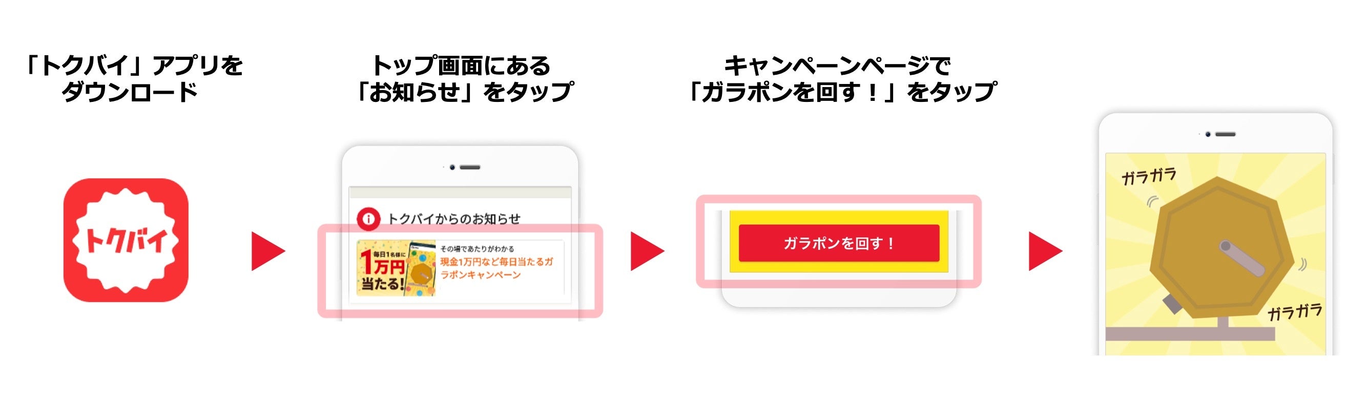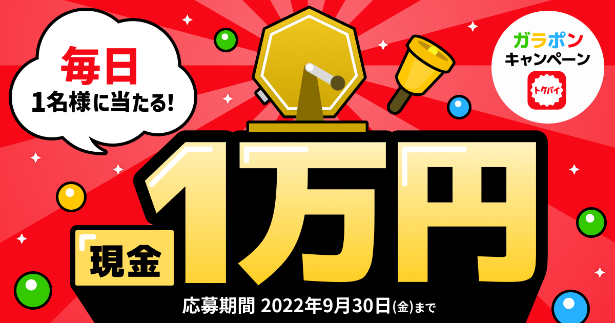 キャンペーンページよりトクバイガラポンにご参加の上、ガラポンを回して当選された方に対象の賞品をプレゼントいたします。