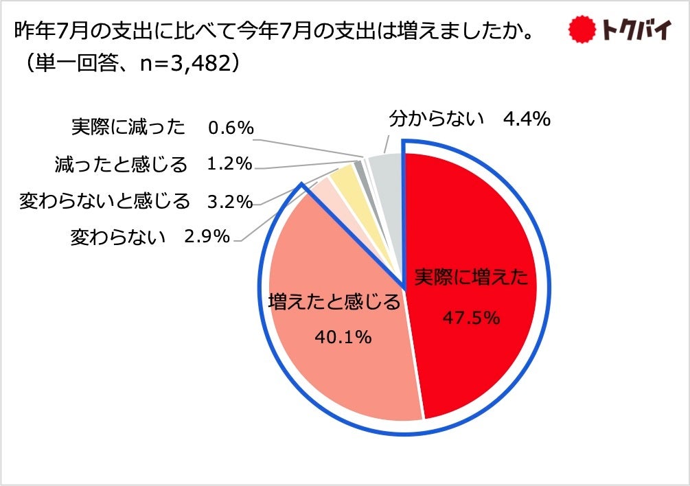 【参考:トクバイ調査】今年7月の支出額が昨年7月に比べて増加したと感じている人が約9割