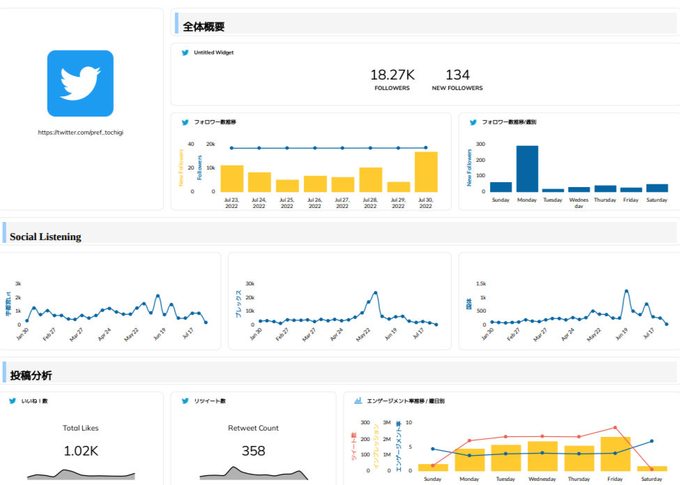 - TwitterやInstagramのデータも取得可能。投稿の反応率を可視化