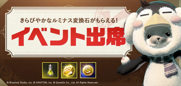 さらに、『エリオン』を初めてプレイされる方(※1)、久しぶりにプレイされる方(※2)には、追加で限定の出席報酬もプレゼントいたします。初めてプレイされる方は「召喚獣 : エリーン (期間制/7日)」や「インベントリ拡張プレミアム道具」、久しぶりにプレイされる方は「輝くルミナス箱」や「[帰属] 6段階ルーンストーン選択箱」などが貰えます。