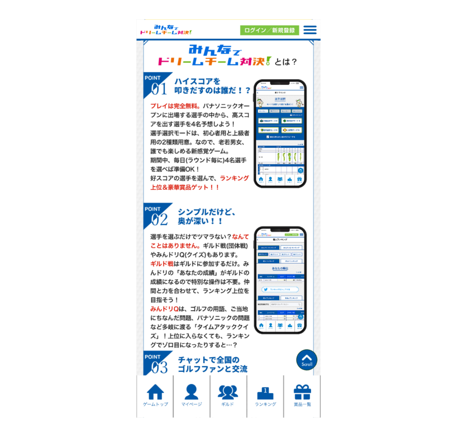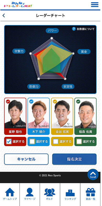 今シーズンからは、ギルド戦(団体戦)やチャット機能、大会に関係するクイズも登場し、ゴルフ観戦の楽しさを倍増させます。さらに有名人や著名人、ゴルフ関係者も参加の可能性があるので、もしかしたら選手との目利き対決が出来るかも!