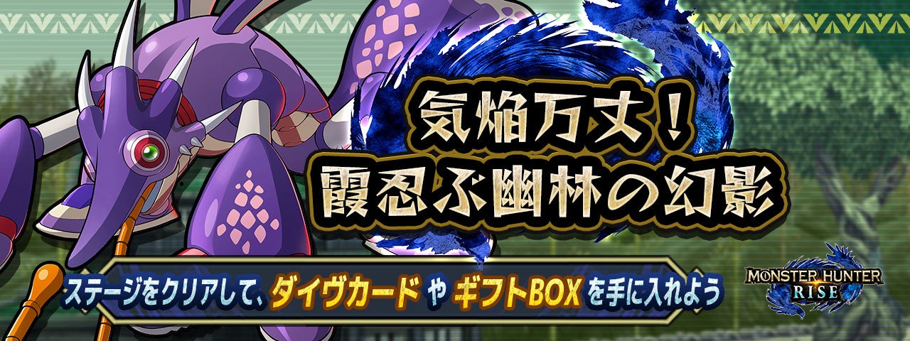 また、『MONSTER HUNTER RISE』コラボ第2弾のイベントステージ[復刻]「狩猟魂!翔し新世界のハンター」を配信します。