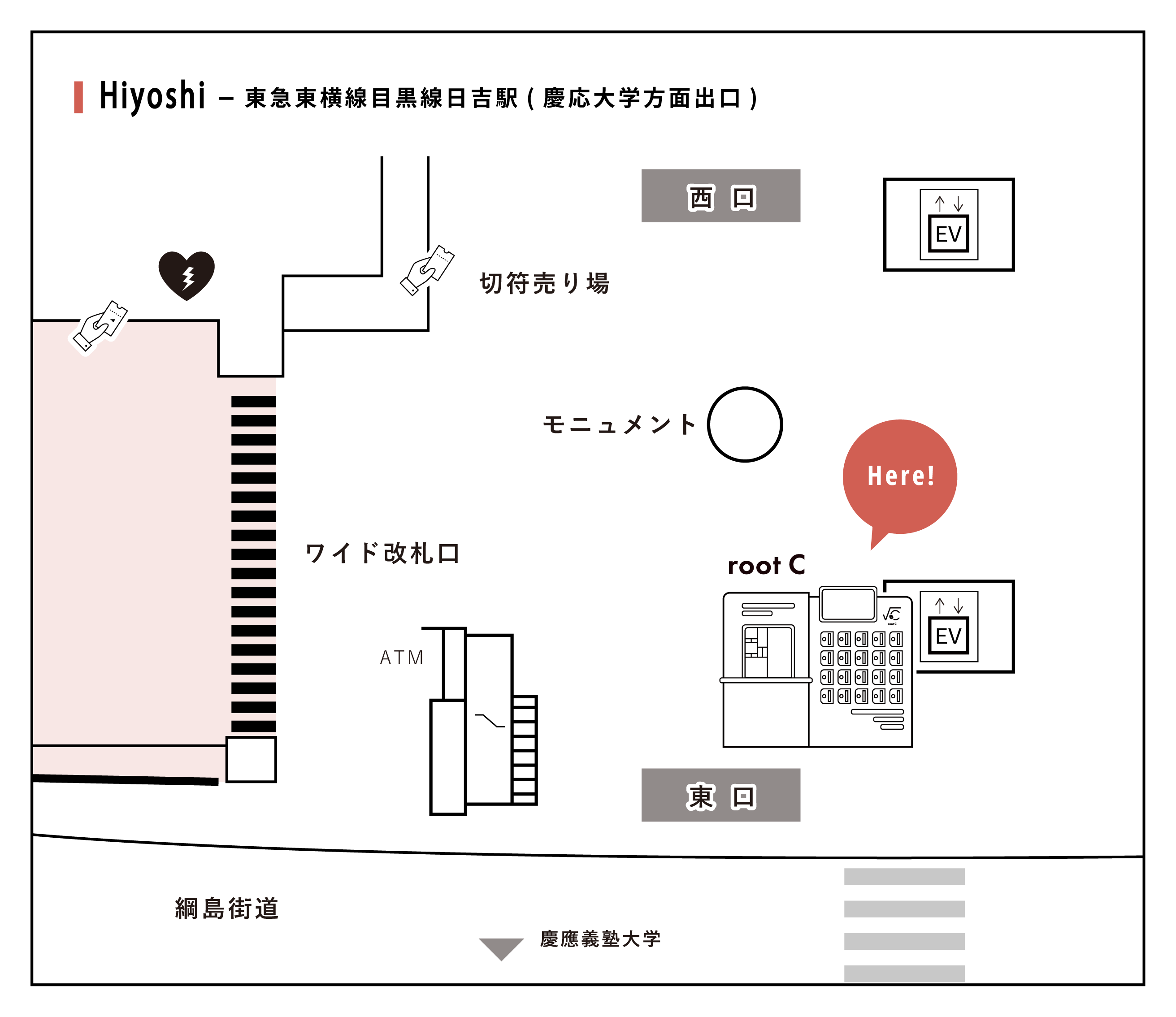 root Cステーション名:root C 東急東横線目黒線日吉駅(慶応大学方面出口)ステーション