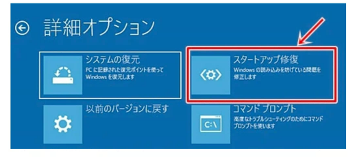 Step4:「詳細オプション」―「スタートアップ修復」をクリックします。