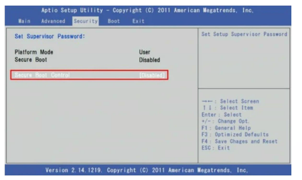 Step2:「Security」タブをクリックして、「Secure Boot」を選択し、「Enabled」または「Disabled」に切り替えます。