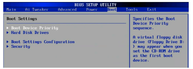 Step2:「BOOT」または「Advanced」のタブをクリックします。