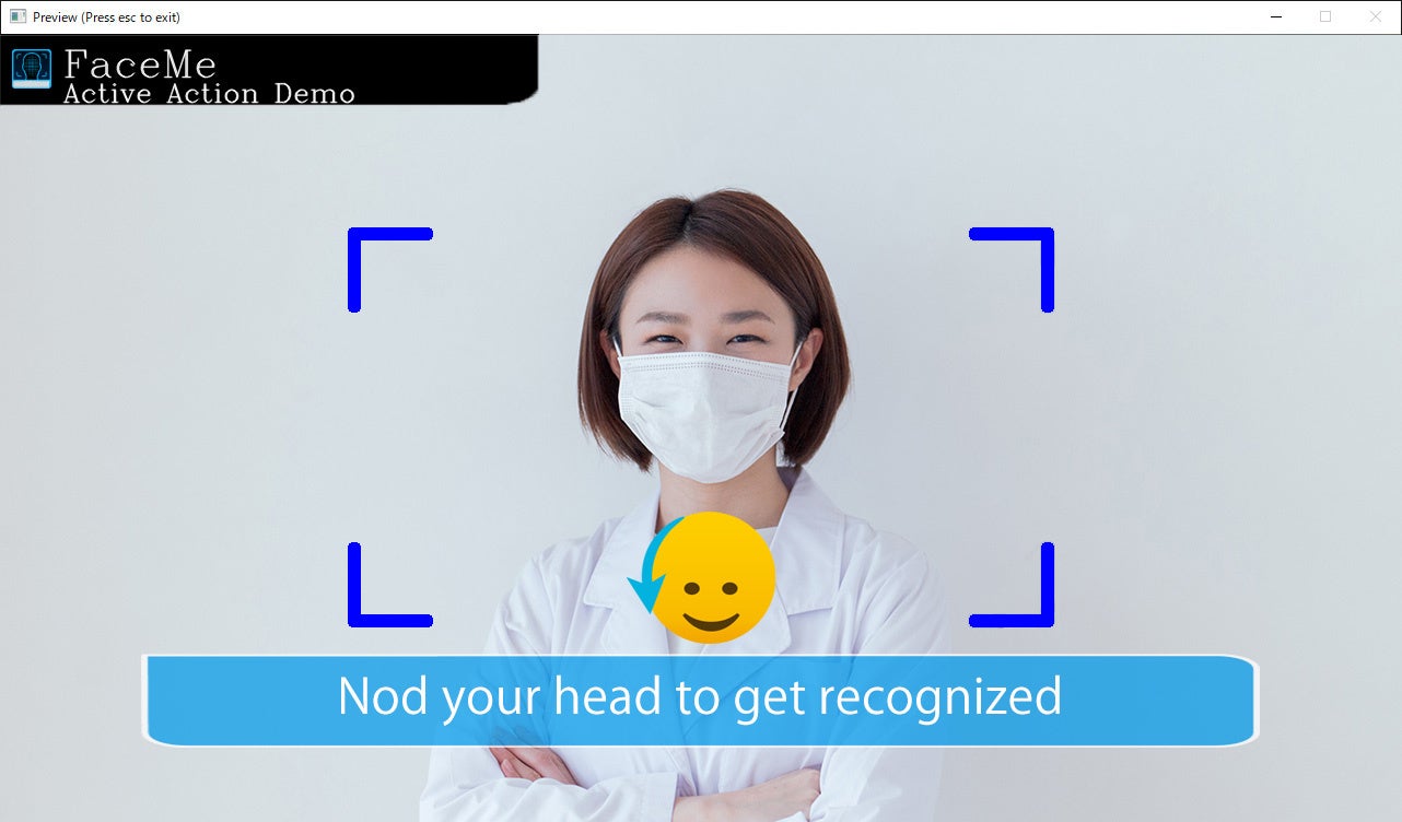うなずき動作の検出アルゴリズムを搭載。アクティブ FRは対象者が、うなずいた場合にのみ、顔認証が行われます。一度に1人の顔を認識し、その顔が中央のエリア内にある場合のみ認識されます。FaceMeのデモシステムから、Active FRの実装例をご確認いただけます。