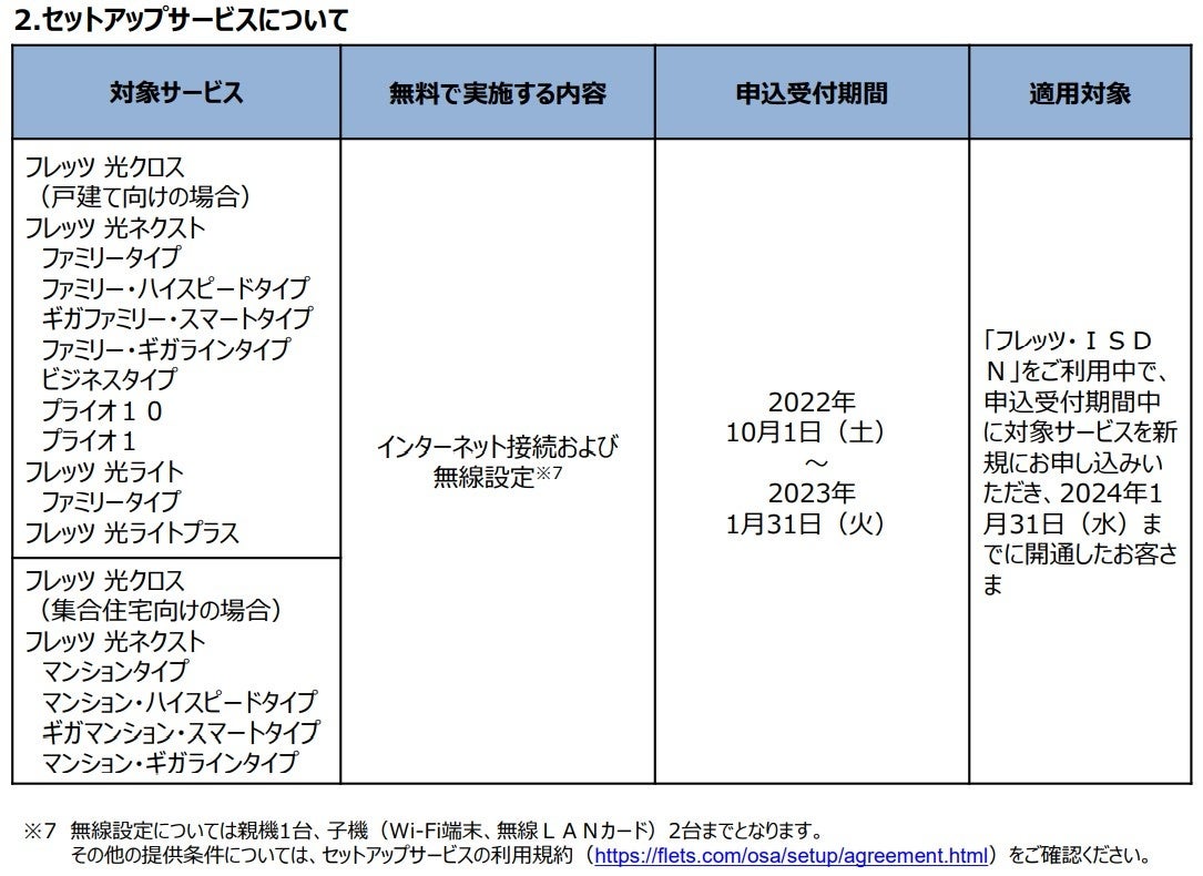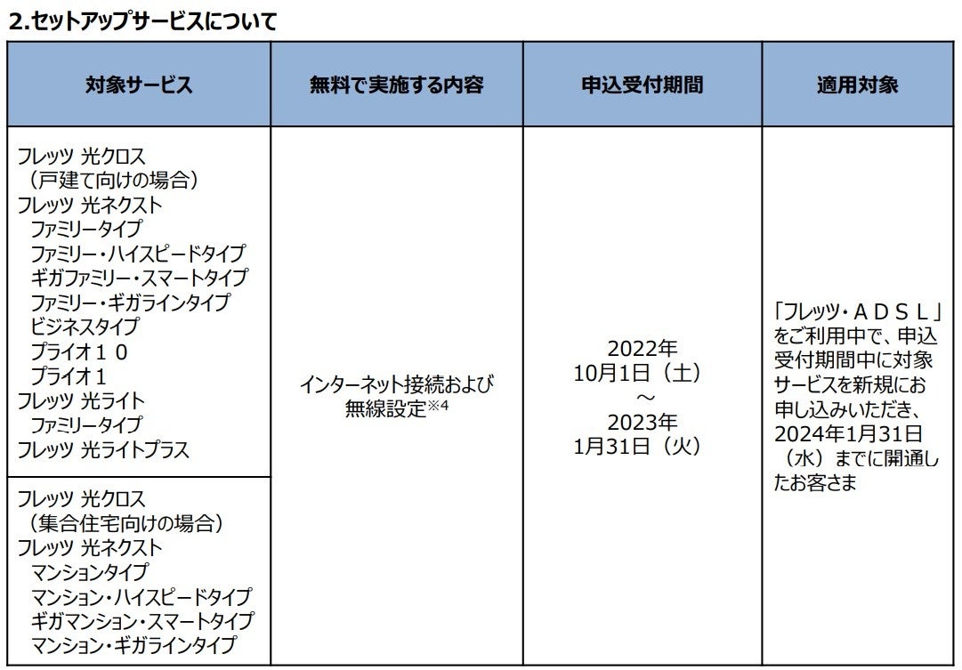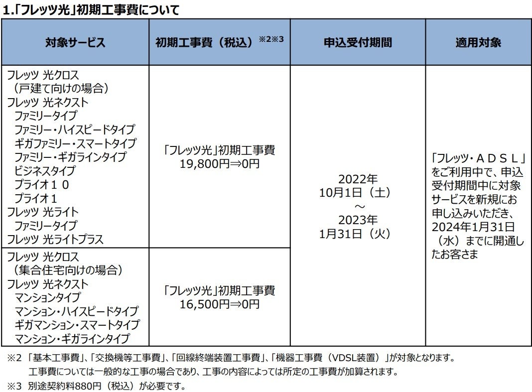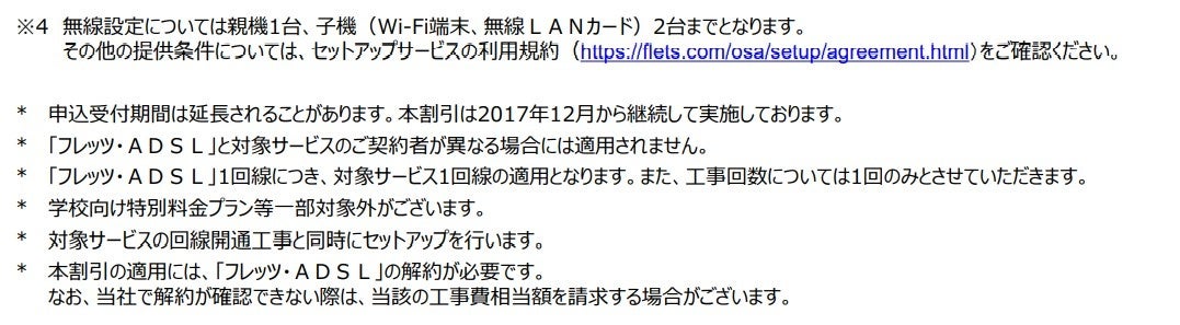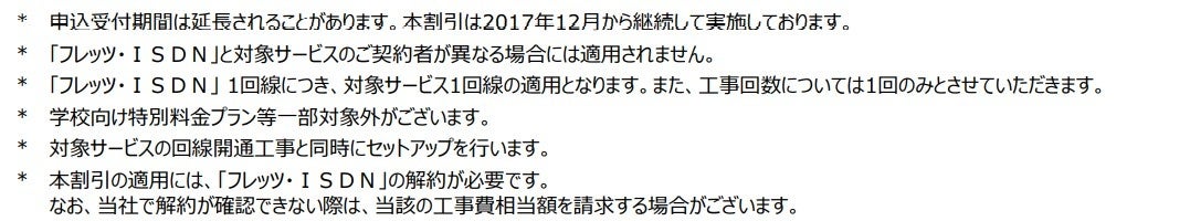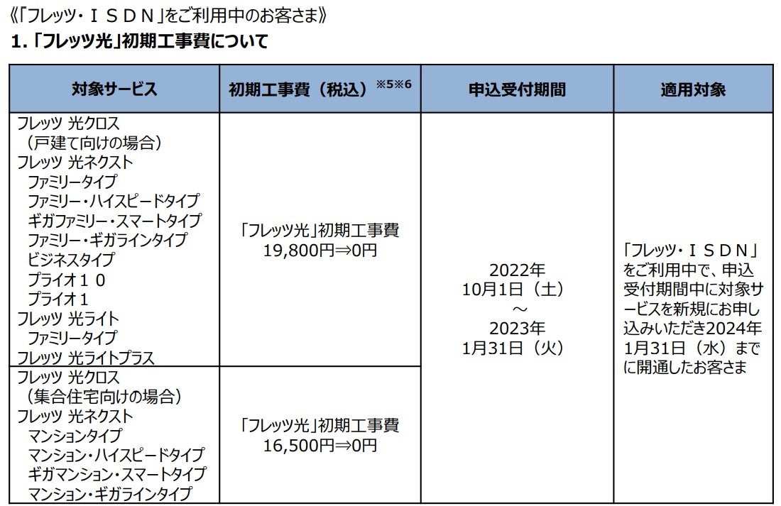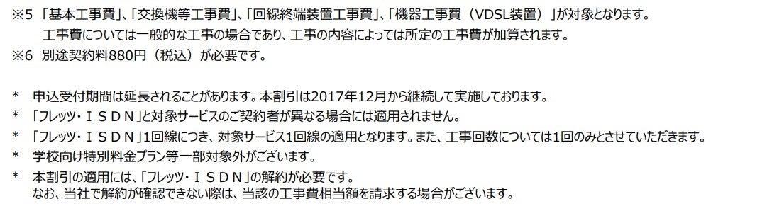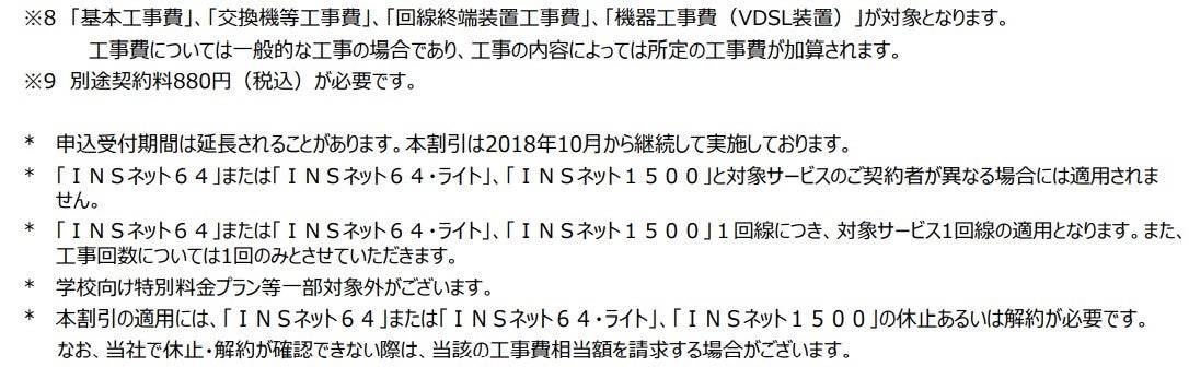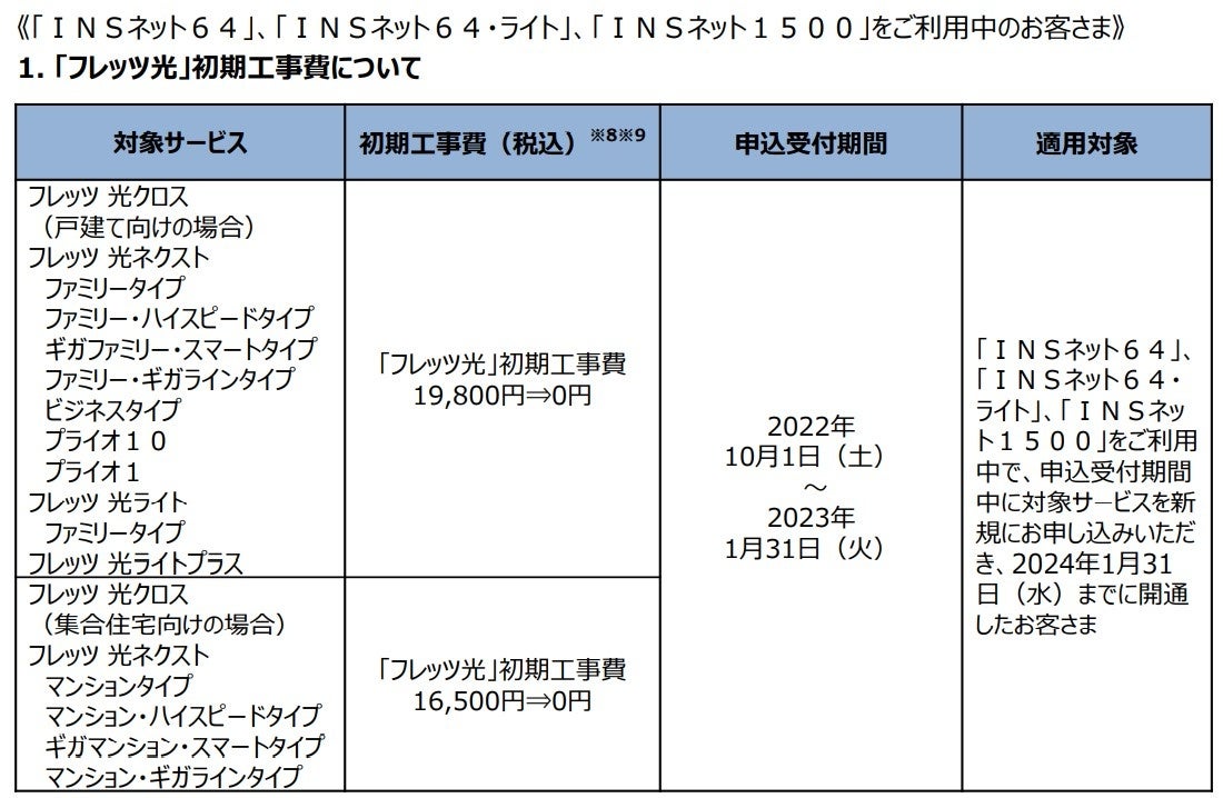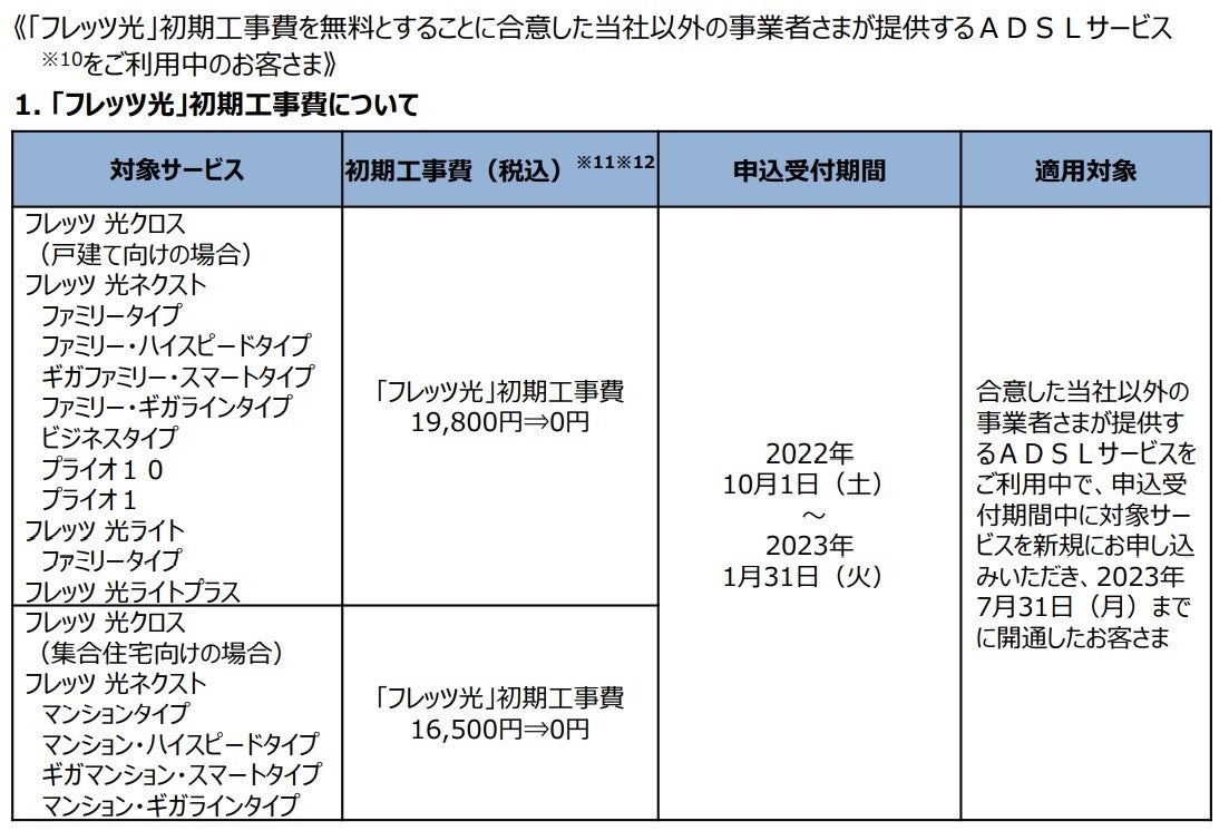 (1)「フレッツ・ADSL」、「フレッツ・ISDN」、「INSネット64」、「INSネット64・ライト」、「INSネット1500」、「『フレッツ光』初期工事費を無料とすることに合意した当社以外の事業者