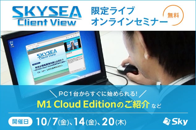 Sky株式会社では、企業・団体向け クライアント運用管理ソフトウェア「SKYSEA Client View」を活用した情報漏洩対策やIT資産管理などについてご紹介する「SKYSEA Client View 限定ライブ オンラインセミナー」(受講費無料)を随時開催しています。