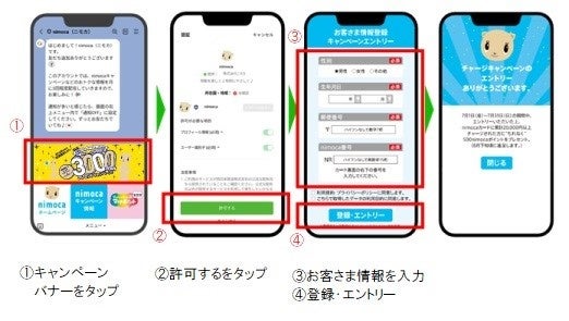 ③対象バス会社にnimocaを使って4回乗車(4回乗車ごとに1口のエントリー)