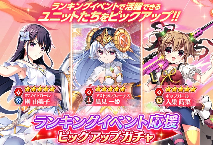 今回は2つに分かれたガチャでそれぞれ3人ずつをピックアップ!ランキングイベントで活躍できるユニットたちを編成してパーティを強化しましょう!
