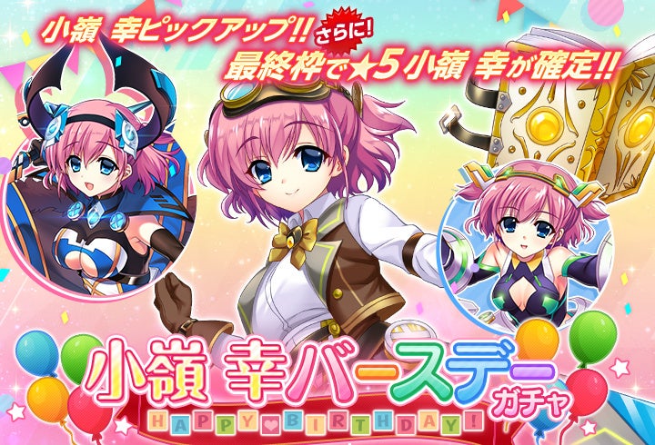 そんな彼女の誕生日を記念して9月23日より「小嶺 幸バースデーガチャ」を開催!バースデーガチャでは幸の全ユニットのピックアップに加え、更に最終枠で「小嶺 幸の★5ユニット」が確定で獲得できます!