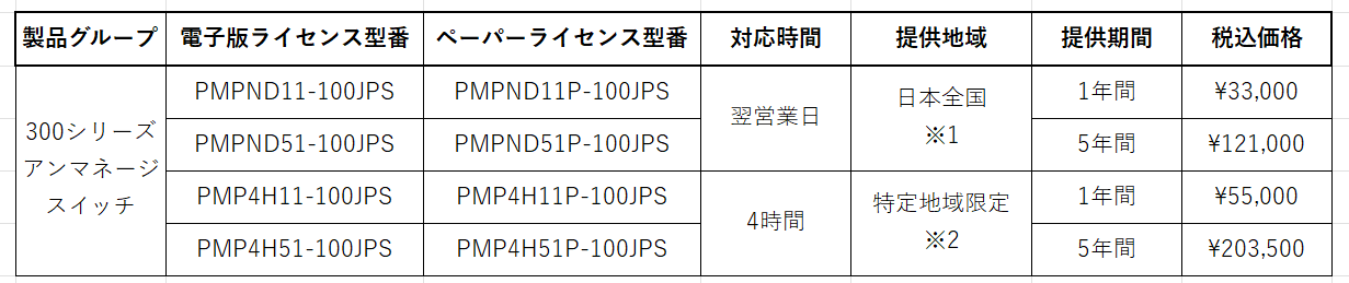 ■300シリーズアンマネージスイッチの有償サポートサービス購入に関して