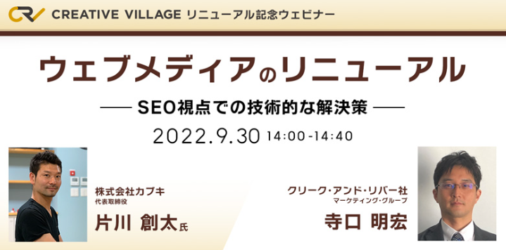 - 【CREATIVE VILLAGEリニューアル記念ウェビナー】Webメディアのリニューアル ~SEO視点での技術的な解決策~
