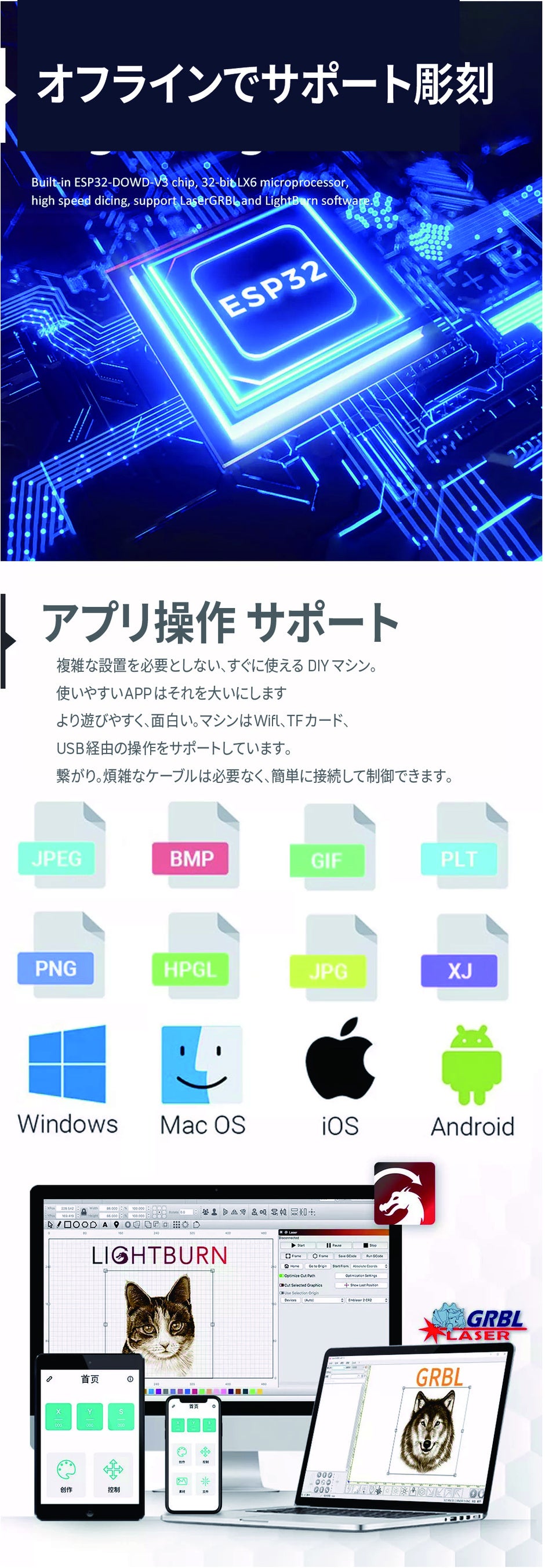 ・人気の加工ソフトウェアLaserGRBL、LightBurnに対応