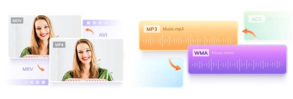 MP3, WAV, WMA, M4A, M4B, M4R, APE, AAC, AC3, MKA, AIFF, FLAC, AU, OGG, AMR, MP2…