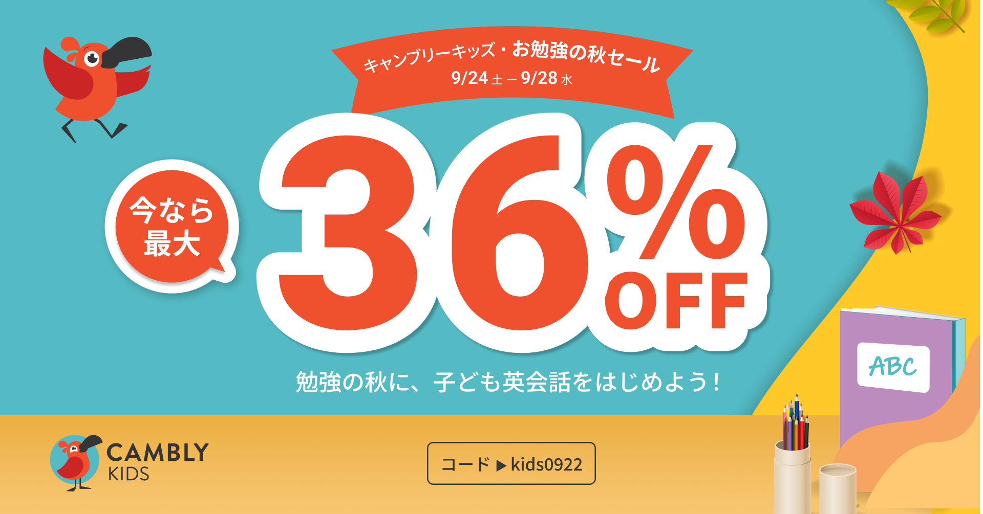プロモコード【 kids0922 】を購入時に適用すると、全レッスンプラン15〜36%OFF!