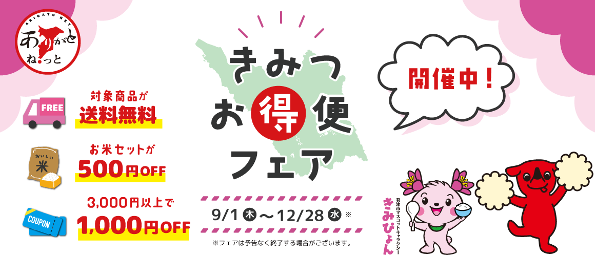 きみつお得便フェア特集ページ : https://jes-arigatonet.com/html/page35.htm