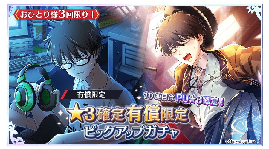株式会社マーベラス(代表取締役社長:佐藤 澄宣/所在地:東京都品川区)による、スマートフォンゲーム『千銃士:Rhodoknight』(読み:せんじゅうし ろーどないと 以降、『千銃士R』)は、期間限定カードの★3「【追われる文豪】八九」なども登場する★3確定有償ピックアップガチャを開催いたします。