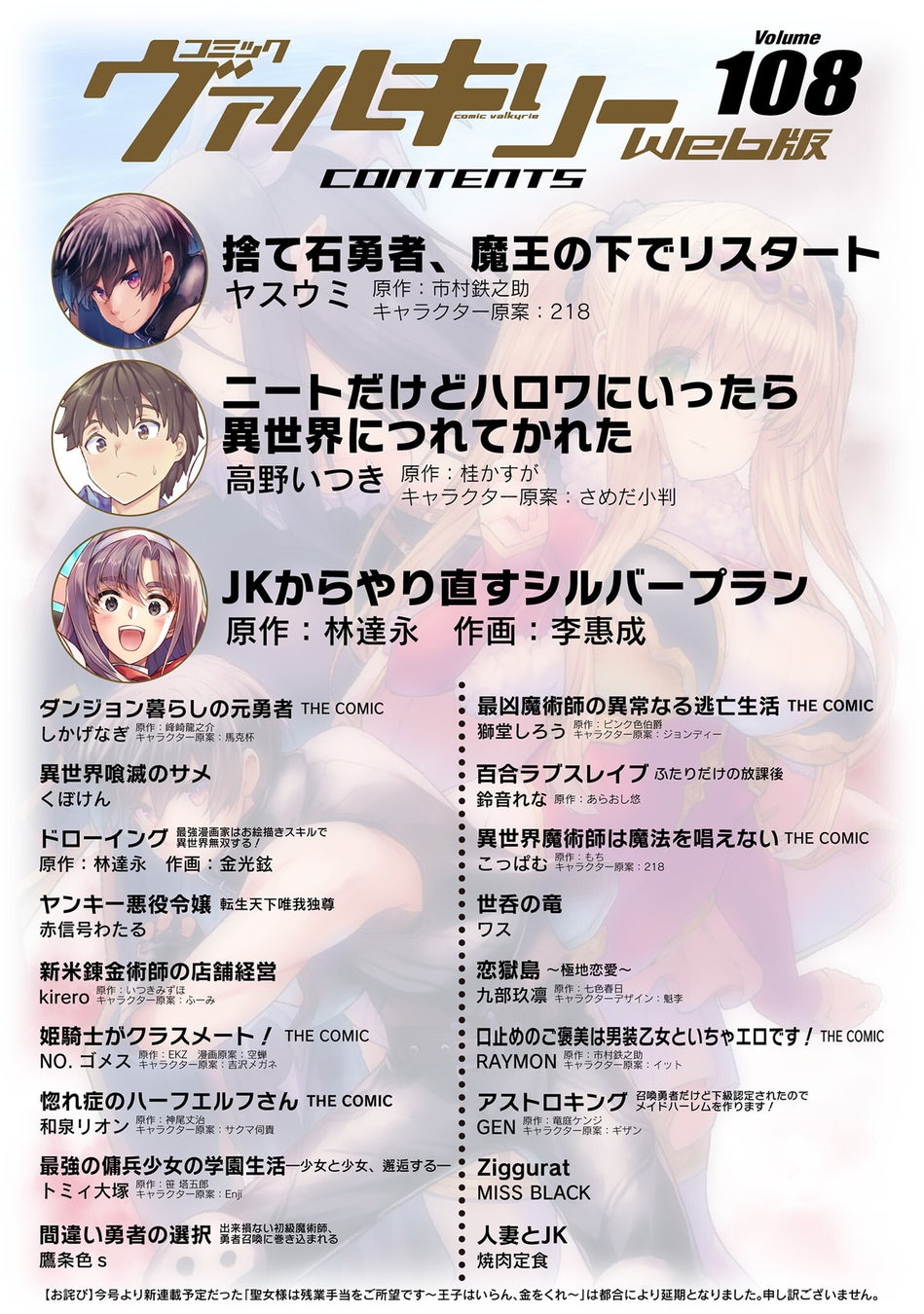 - コミックヴァルキリーWeb版Vol.108 https://www.comic-valkyrie.com/magazines