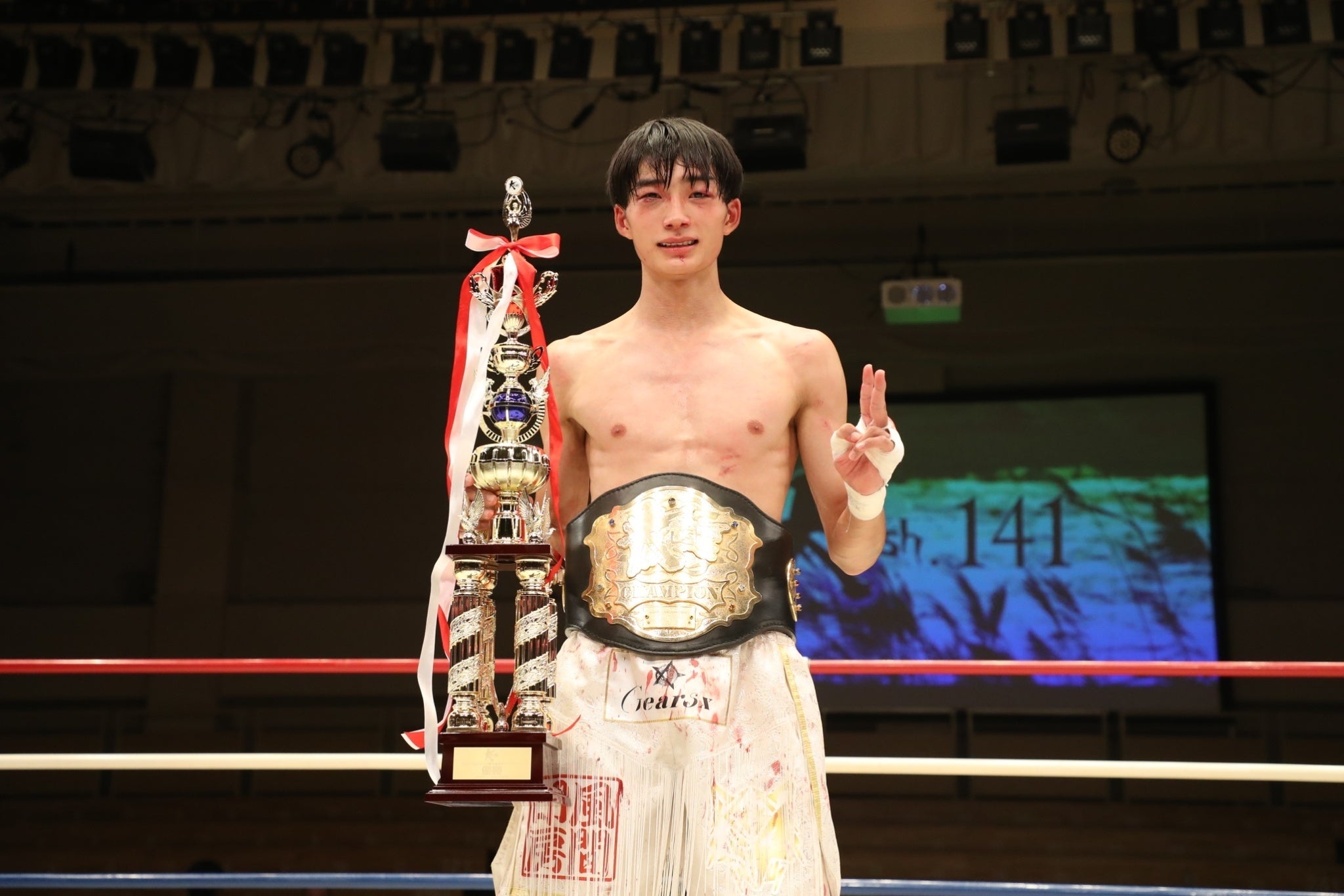 2試合合わせて7R戦い抜いてベルトを巻いた大久保は、涙をにじませ「いろんなところから注目されて自分が絶対勝たなきゃいけない状況でこのトーナメントに優勝できたことはほんとに嬉しかったです。」と語り、感無量の王座戴冠となりました。