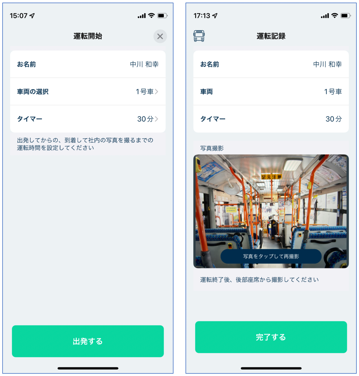 2. 運転終了後に、後部座席に移動して写真を撮影、アップロードする。