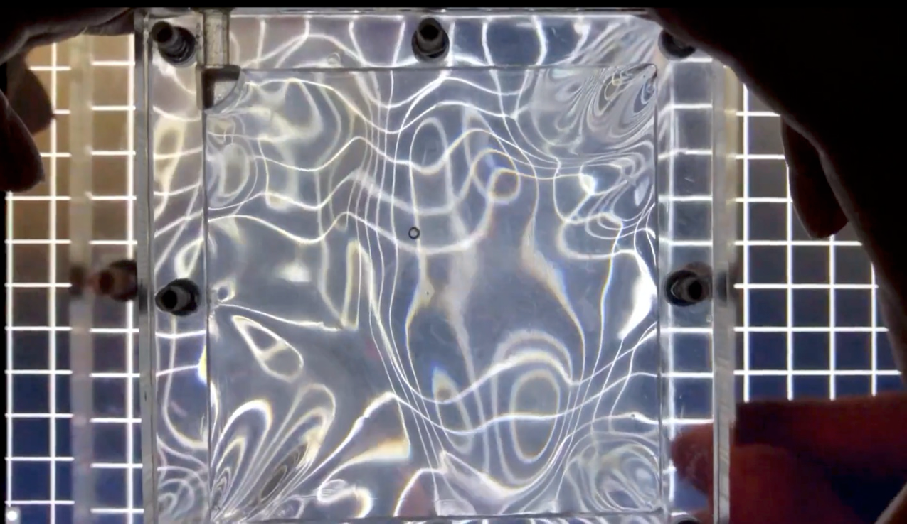 曖昧なカテゴライズの画像群を学習した機械学習プログラムは生物的なイメージを次々に生成し、移動するレンズはイメージに迫ったり通り過ぎたりする。ノンオプティカルなイメージとオプティカルなレンズ、対照的な両者が、無限を感じさせながら制限の中で行われる似通った行為とも捉えられる。生成行為それ自体を観察、観測させる作品。