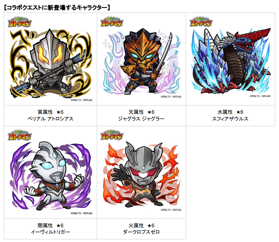 また、コラボ第1弾召喚キャラ「ウルトラマンティガ」「ウルトラマンゼロ」などのコラボキャラクターも登場します。さらに、コラボ期間中にログインすると、コラボ配布キャラクター「ウルトラマン」を1体プレゼントします。