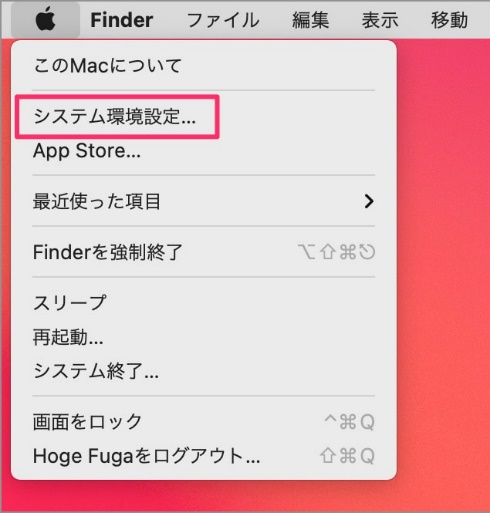 - 左上のアップルメニューをクリックして、「システム環境設定」を開きます。